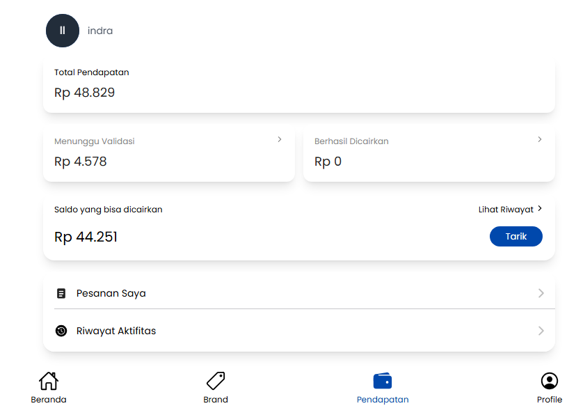 Buka halaman pendapatan.