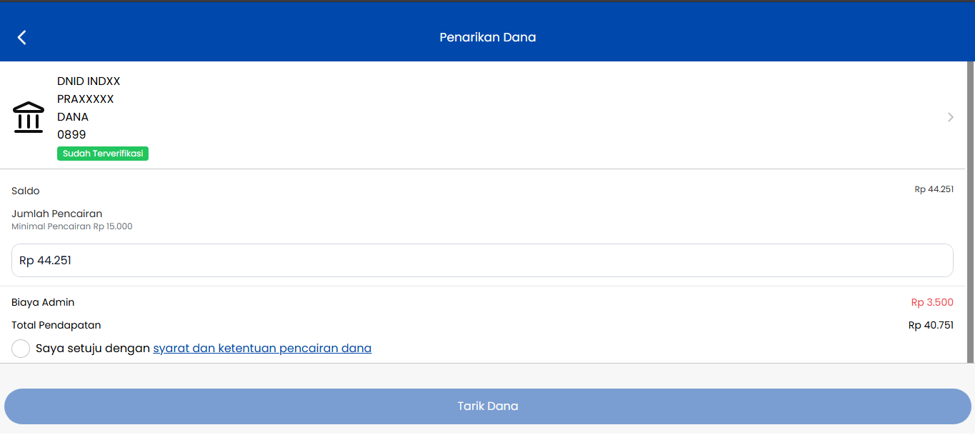 - Klik tombol Tarik Dana.